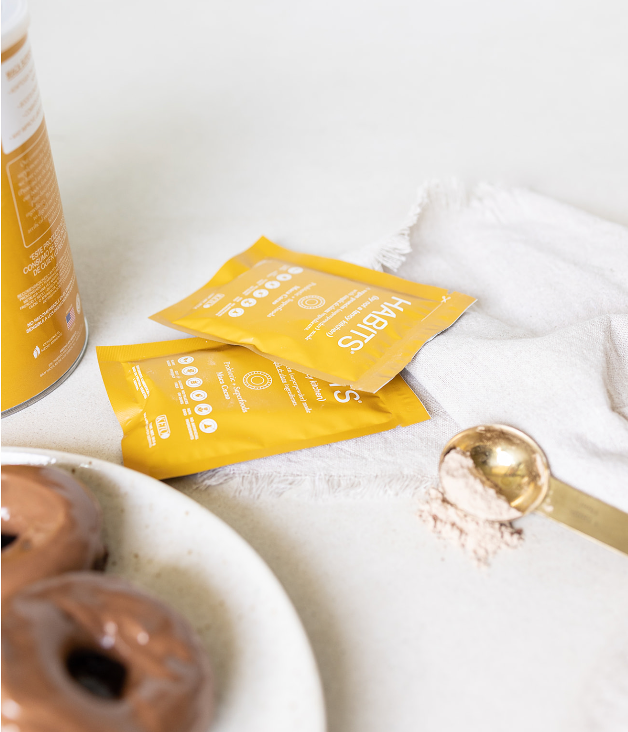 Concentrado de Proteína Vegetal, Cocoa, Maca, Sabor Natural, Canela Molida, Sal Rosa del Himalaya, Extracto de Hoja de Stevia y Probióticos